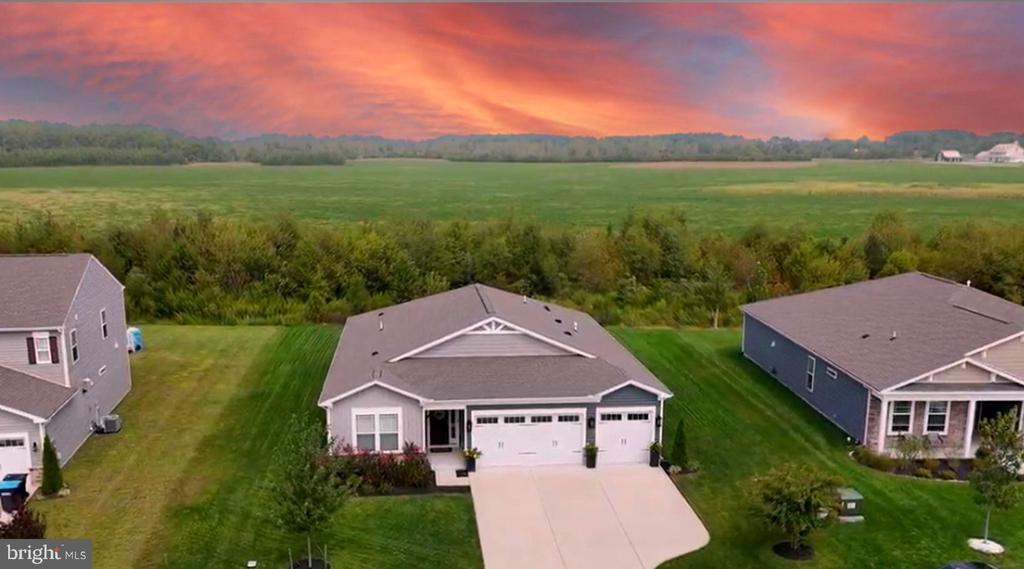With a 3-car garage, thoughtful upgrades, and a floor plan designed to capture backyard views from the moment you step inside, this elegant ranch home built in 2023 home offers the perfect balance of natural beauty, elegance, value, and convenience. Just minutes from Broadkill Beach and historic downtown Milton, this single-level, low-maintenance ranch features over 2,300 square feet of thoughtfully designed space and VERY low electric bills of about $150 per month. You’ll love the open-concept layout, split floor plan with wide luxury vinyl plank flooring, crown molding, tray ceilings, and architectural details that elevate every space. Gourmet kitchen with propane gas cooktop, wall oven, custom backsplash, quartz countertops, and champagne color finishes, and upgraded InstaView refrigerator. The private owner’s suite is a retreat of its own, tucked to one side of the home with two spacious walk-in closets and a spa-inspired bath boasting dual vanities, a private water closet, and a huge, luxurious accessible European-style walk-in/roll-in shower that is both elegant and practical for aging in place. Three additional bedrooms and two full baths provide space for guests, family, or a home office. A screened porch overlooks the serene backdrop of wetlands, where sunrises and sunsets create a truly tranquil setting. Practical luxury continues with a 3-car garage upgraded with a durable, high-performance coating, full yard irrigation, and a screened porch with yard backing to the woods with stunning sunrise and sunset skies. Located in a vibrant and active community with resort-style amenities like pickleball courts, a clubhouse, a pool, a playground, a dog park, and community events like movie nights and Food Truck Thursdays. Enjoy the best of both worlds, just minutes from Sussex County’s top attractions while surrounded by nature and small-town charm, all without sacrificing location or convenience. Flood insurance is NOT required! No city/town taxes! Fences are allowed.