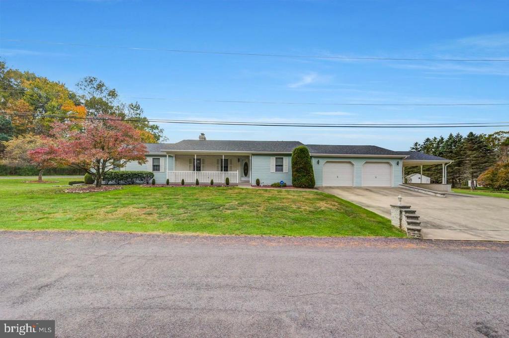 Lovingly constructed with attention to every detail, this 4-bedroom, 2 full + 2 half bath ranch-style home combines timeless craftsmanship with modern comfort. Set on a corner lot of over half an acre, the property features a heated 2-car garage plus carport, new deck, quarry-tiled front porch, and construction-grade concrete driveway and walkways. Inside, you'll find custom solid oak cabinetry, trim, and wood accents throughout, a spacious kitchen with pass-through to the dining room, and a sunken living room with a beautiful fireplace and handcrafted built-ins. The primary suite offers a walk-in closet and private bath, while the finished lower level adds a custom bar, pool table, pellet stove, cedar closet, and extra living space. Conveniently located near I-80 and PA 476, this home offers quality, comfort, and easy access — truly a commuter's dream.