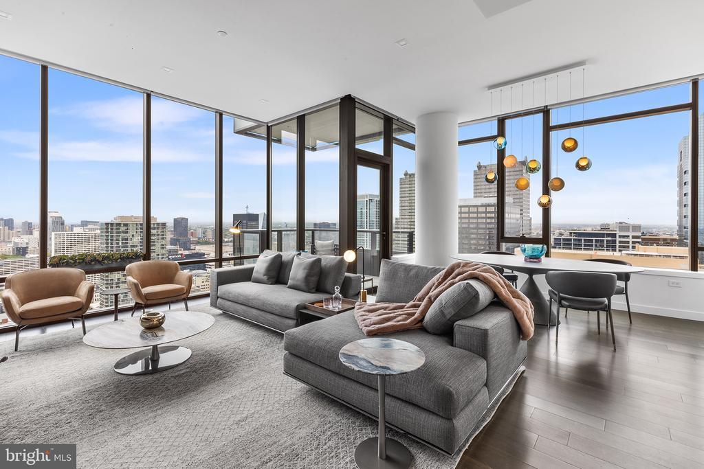 Introducing The Laurel, Philadelphia's newest luxury Condominium and the final residential opportunity on historic Rittenhouse Square. The striking glass tower soaring 48 stories is a masterpiece of contemporary architecture designed to inspire. The Laurel offers quarter floor Sky residences, half floor Estates and full-floor customizable Penthouses. Come home to one of the most spectacular sunsets the city can offer through the floor to ceiling windows. The corner balcony allows for a dynamic experience of views from north, west and south giving this home optimal light exposure. The Euro-style kitchen showcases a stunning high gloss Polar White cabinetry. Your chef will enjoy this state-of-the-art Sub-Zero and Wolf with an integrated refrigerator, gas cooktop, steam oven and full size convection oven. The kitchen island features White Statuary Quartz counters with waterfall edge, a large undermounted sink, Dornbracht faucet, Signature dishwasher and under-counter drawer microwave. Gorgeous 6” plank dark oak hardwood from Carlisle can be found throughout this home including the bedrooms. Homeowners will enjoy a spacious owner’s suite with two large walk-in closets, stunning sunset views and your own private spa-like oasis with luxurious freestanding soaking tub atop Empyrean Ice White marble floors surrounded by floor to ceiling porcelain walls and complimented by an expansive shower with Fantini shower fixtures. A comfortable size laundry room with full size Maytag washer and vented dryer make life easier. Prewiring for future blinds and smart home technology complete this magnificent residence. ***One parking space is included in listed price, second parking space is available for additional $100,000***