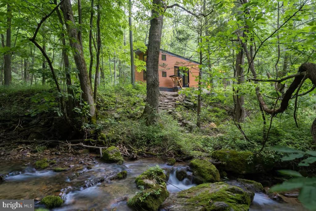 “Creekside,” is a fully functional and highly rated 312-square-foot tiny cabin with a loft. Tucked into the woods situated on 19.36 acres, just 50 feet from a year-round mountain stream, this beautifully designed retreat has been a successful Airbnb for over four years, drawing rave reviews from guests. The cabin accommodates four people comfortably with a queen bed and two twin beds in the loft. Its interior is smartly designed to feel open and roomy, with a modern kitchen that includes a two-burner gas stove, under-counter fridge, microwave, Keurig coffee maker, toaster, and all necessary cookware. There’s also a cozy living area with two rockers, a dining/work table, a ceiling fan, and a wall-mounted flat-screen TV, with remote. The cabin includes tankless hot water and fiber-optic internet with speeds up to 95 Mbps. Creekside is being sold fully furnished, including a 1995 Honda Micro van used for housekeeping, van used for housekeeping, and linens. Even more exciting, the property has county approval for two additional one-bedroom tiny cabins, and plans are included with the sale. Make your appointment today and come experience everything 949 Dumpling Run Road has to offer!